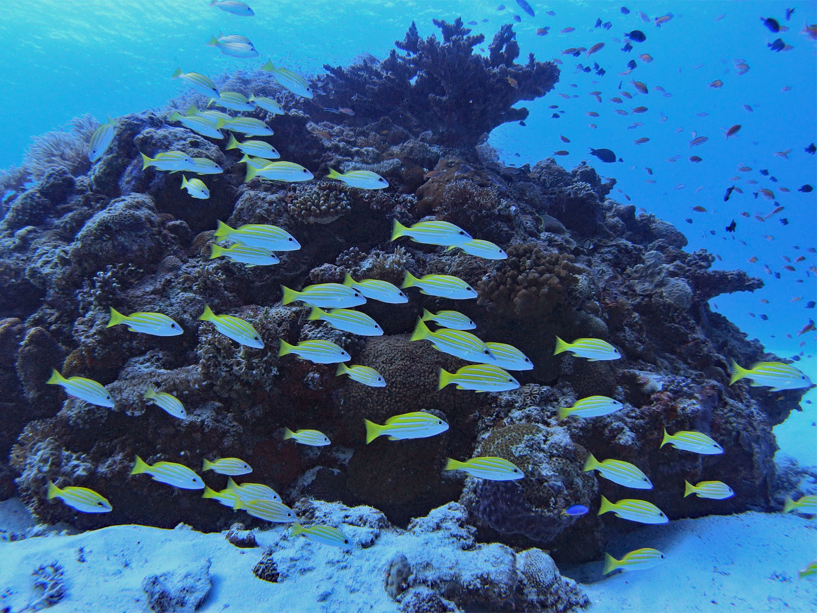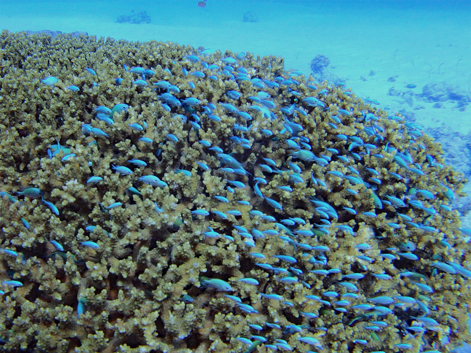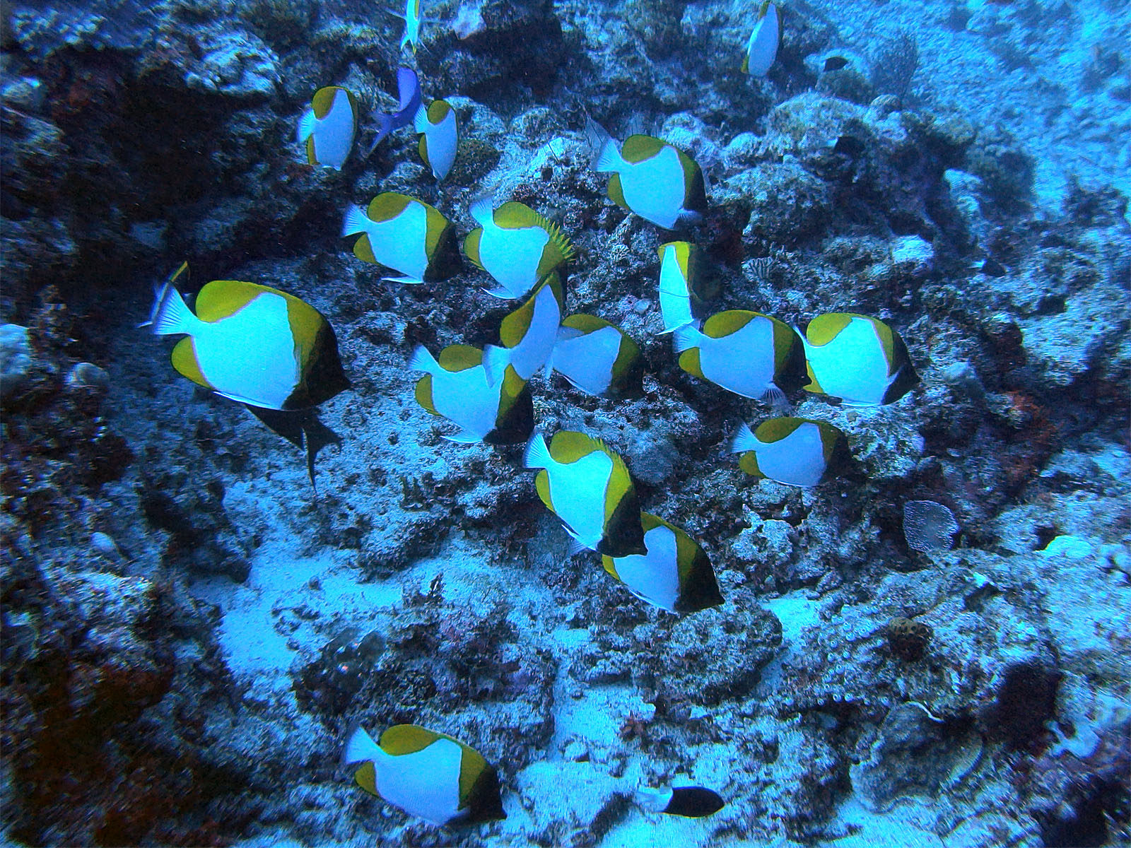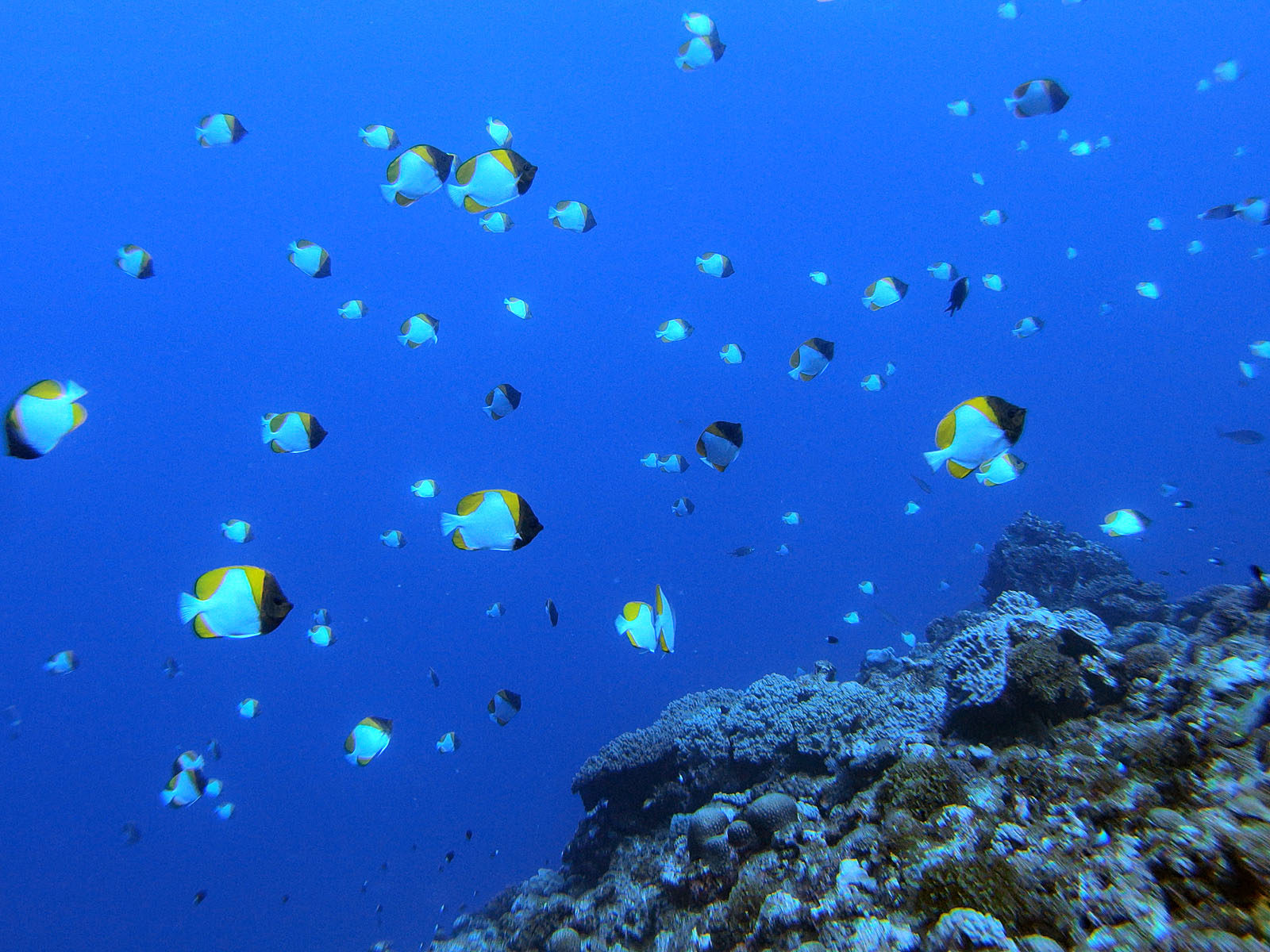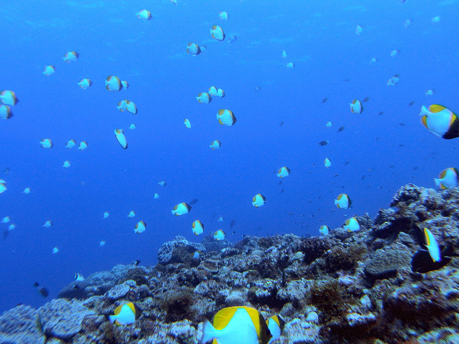 結構流れがあったのだけれど、カスミチョウチョウウオの群れがすごかった! 数もすごく多くて、結構近くまで寄れて、今までカスミチョウチョウオは何度も見ているけどこんなの初めて。流れがあったので皆同じ方向を向いているのでそれも絵になるし。良かったー!