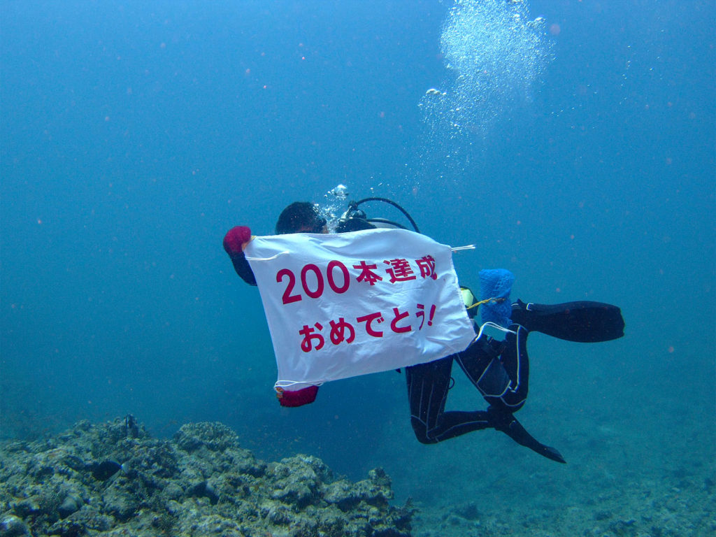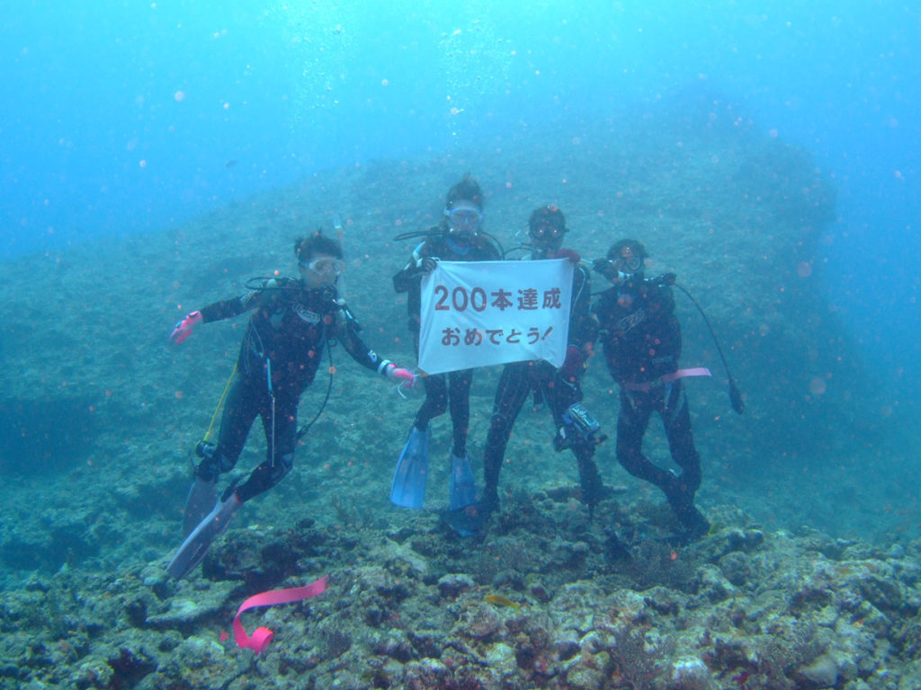 今回このダイブで200本目になるので、水中で祝ってもらいました。どうもありがとう、皆様(特にTさん)。