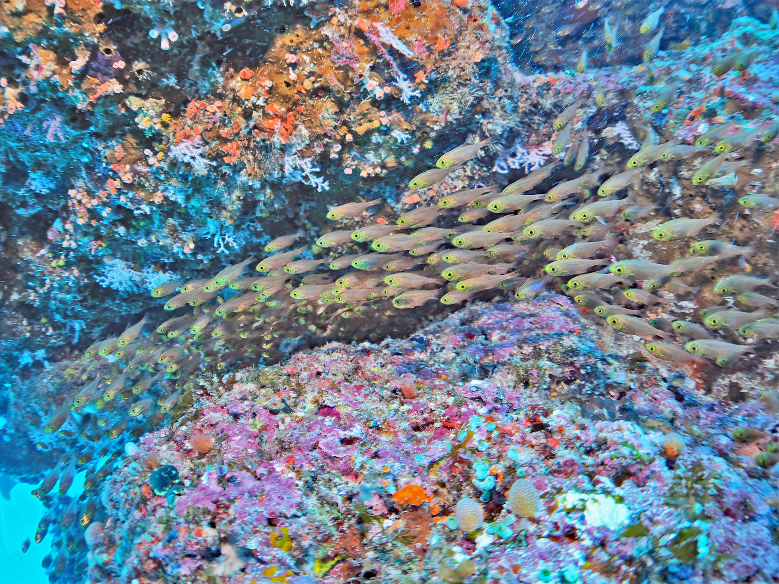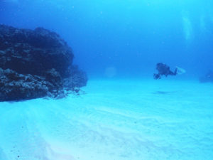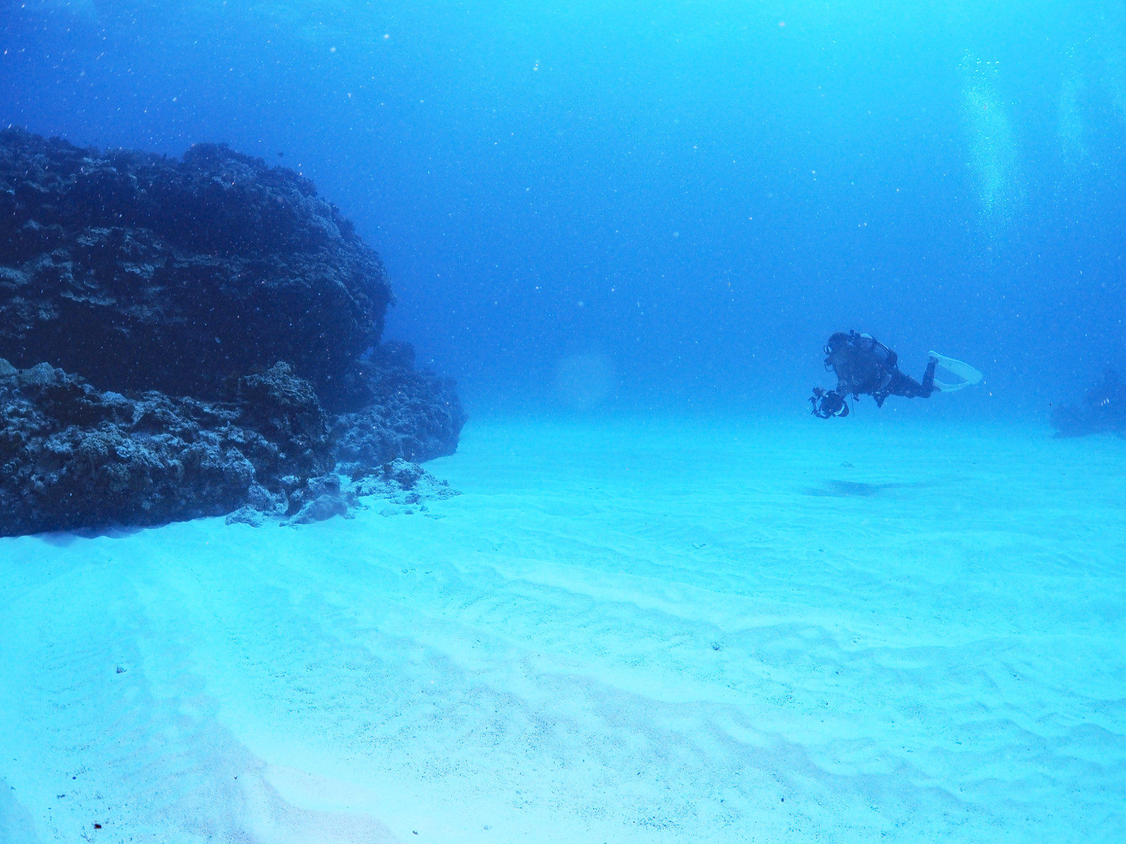 写真は難しいけど、白い砂地がきれいでした。しかし、、、、一見まったりそうに見えるけど、実は大潮ということもあって結構流れていて、砂地の上を移動するときは指を砂に入れてもあまりきかなくて実はハードなダイビングでした。