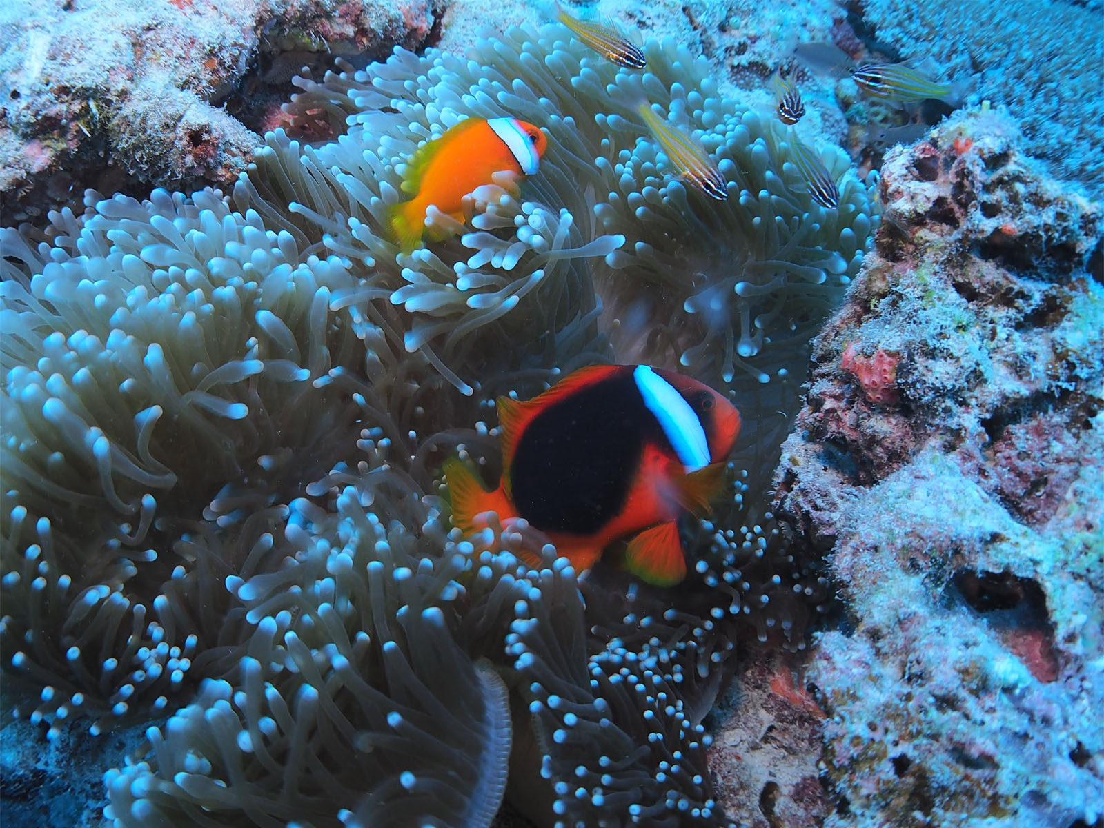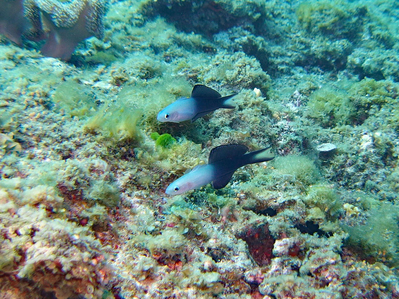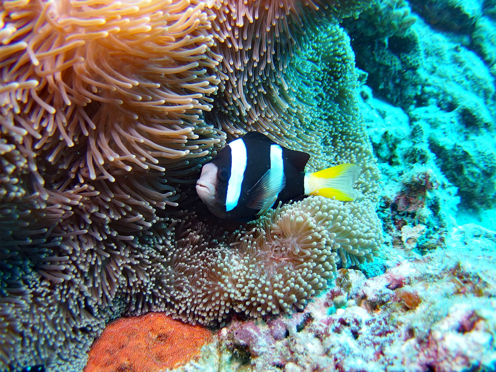 2本目、エントリして水深5mくらいまで潜ったところで、、、、 あれっ、なんかおかしい。右耳からポコ、ポコと気泡が出るような音が、、、、 痛みとか水が入ってきた感覚はまったくないけど、こりゃおかしいと思ってガイドのKさんに見てもらうと、ごくごく小さな気泡が出ているとのこと。もっと深くまで潜ったら水が入ってくる可能性があると思って、一人でボートに戻ってダイビングは中止。痛みはないけど耳に水が残っている感じが結構続いていて、やっぱりなんかおかしい感じ。こりゃぁ今回のダイビングはもう中止で、帰ったら耳鼻科に行って見てもらわないとだめだぁ (>_<)