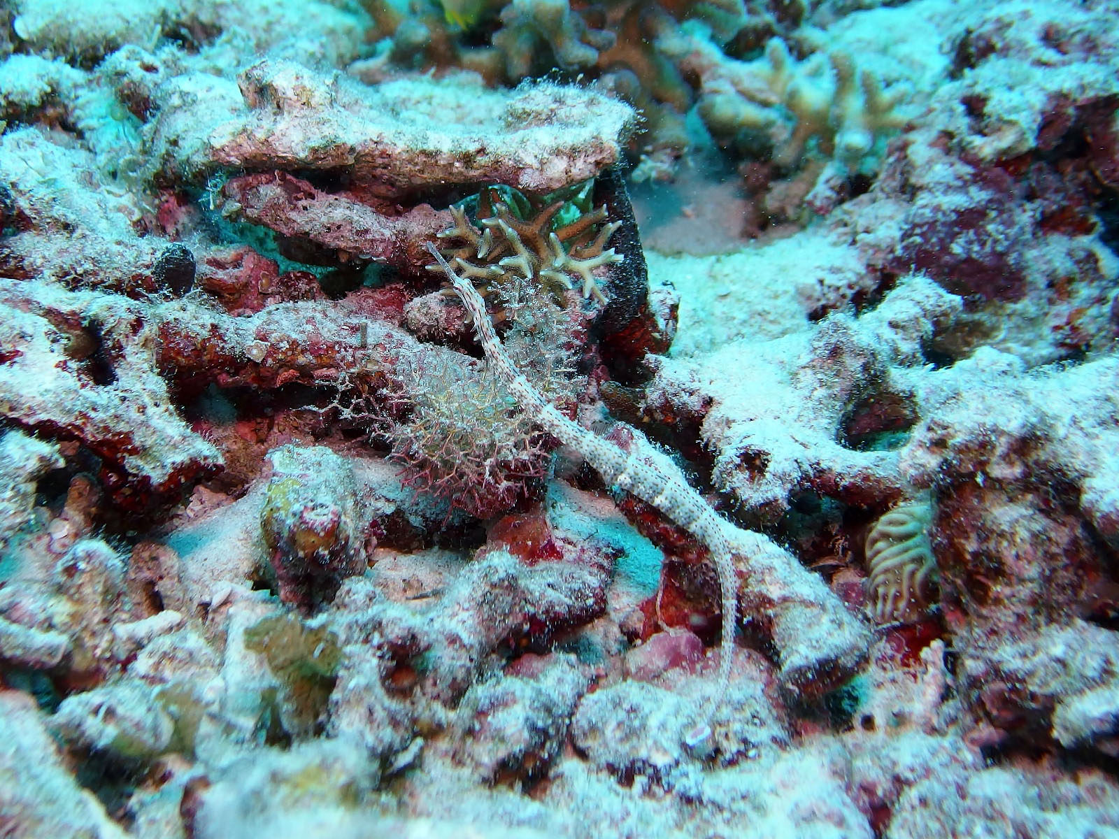 1本目は座間味の港からすぐ近くの阿真ビーチ前へ。昨日に比べれば良くなったと言われたけれども、透明度イマイチ。水温22℃、5mmのワンピースで潜って最初は寒くなかったけど、後半かなり寒くなってきて、次からはベストを中に着ました。