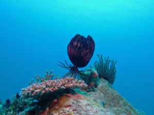 2本目は古座間味のビーチの手前にある座間味シルとポイントで初めてのところ。巨大なサンゴの塔があって、圧巻でした。